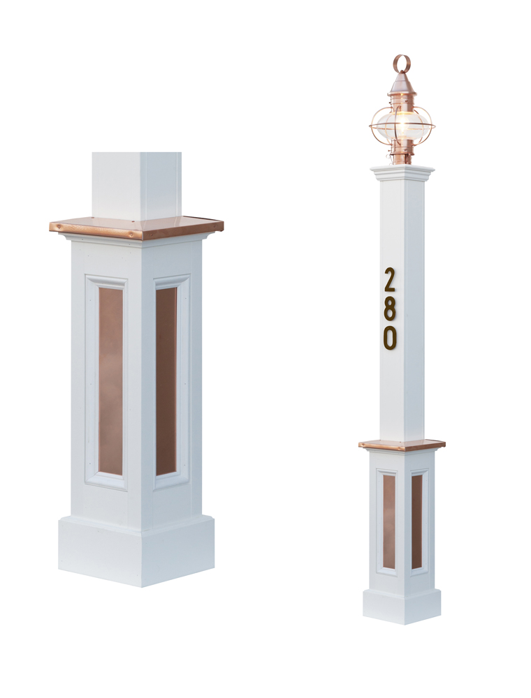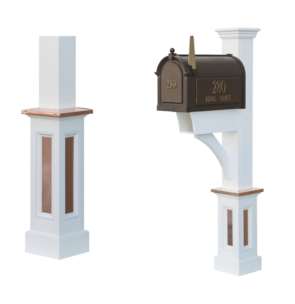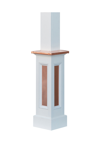 Copper post accents for your mailbox post or lantern post. Available on all raised panels posts.